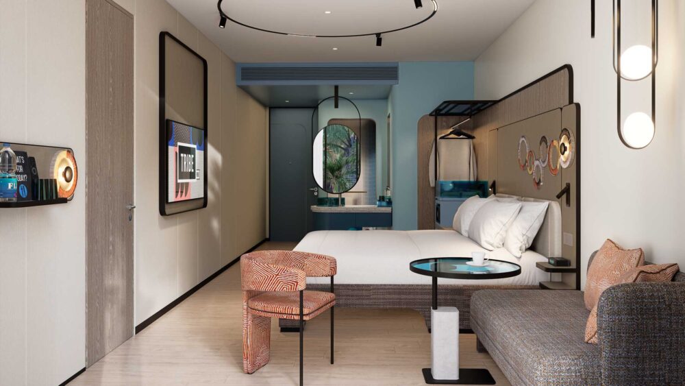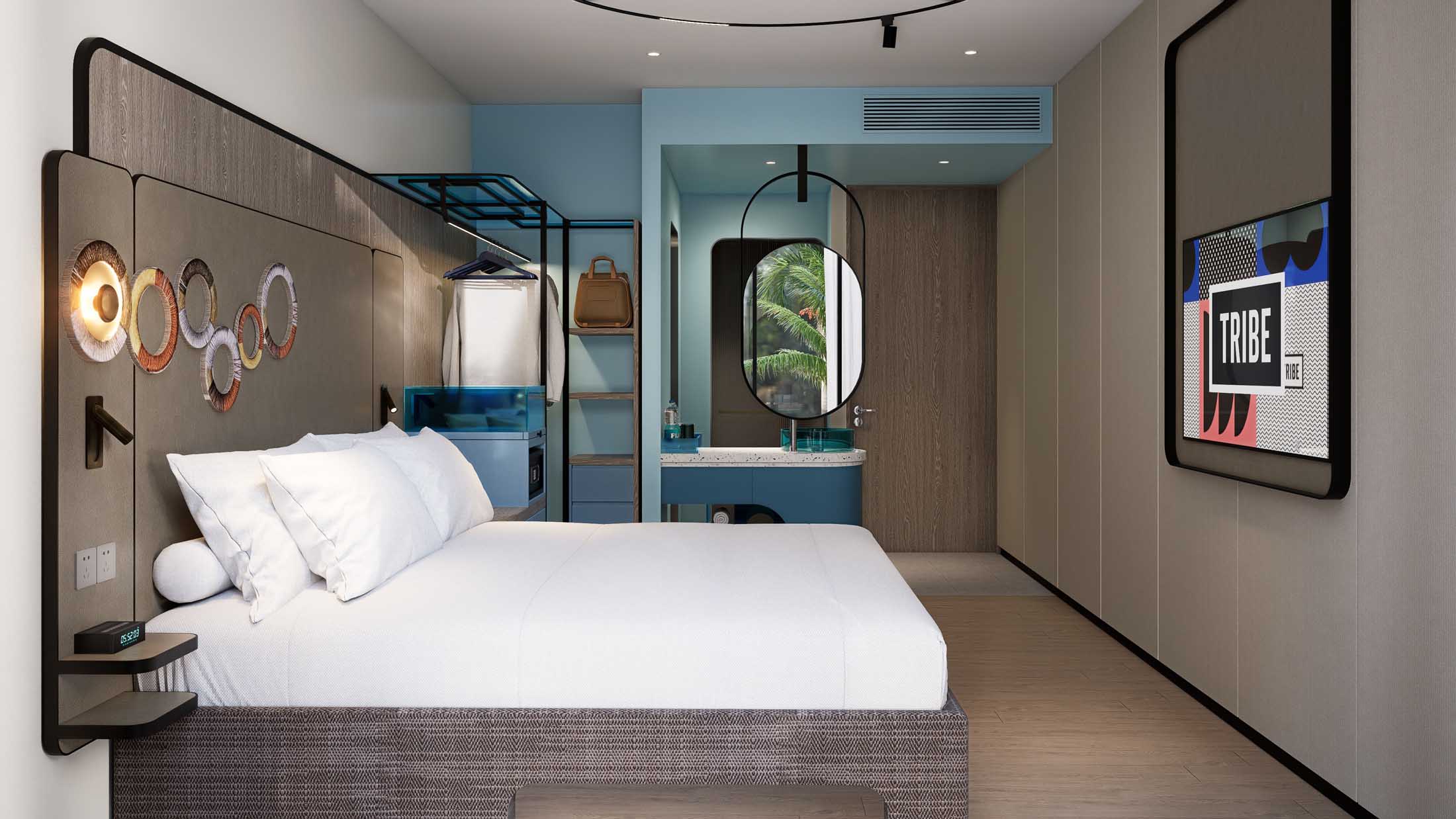 Designed with families in mind, the Family Room offers 39 square meters of comfortable, stylish space. It features a plush king-sized bed alongside a cosy bunk bed nook perfect for children under 15. The room blends contemporary design with Fijian warmth, creating a vibrant yet relaxing atmosphere where everyone can unwind. Equipped with a 55" TV, mini fridge, and all the essentials, it’s the ideal retreat for families looking to enjoy Denarau with comfort and style at Na Tomba.