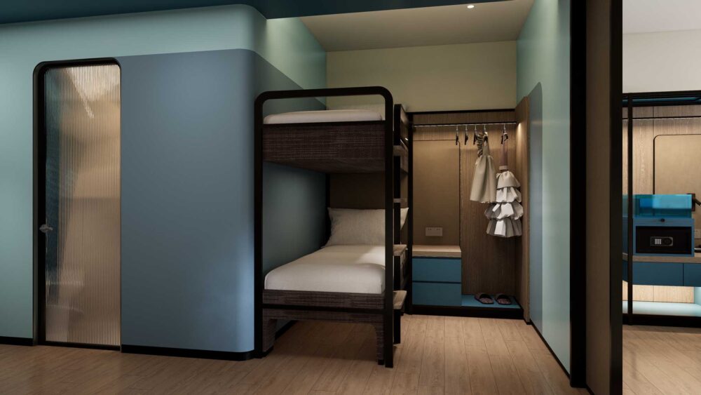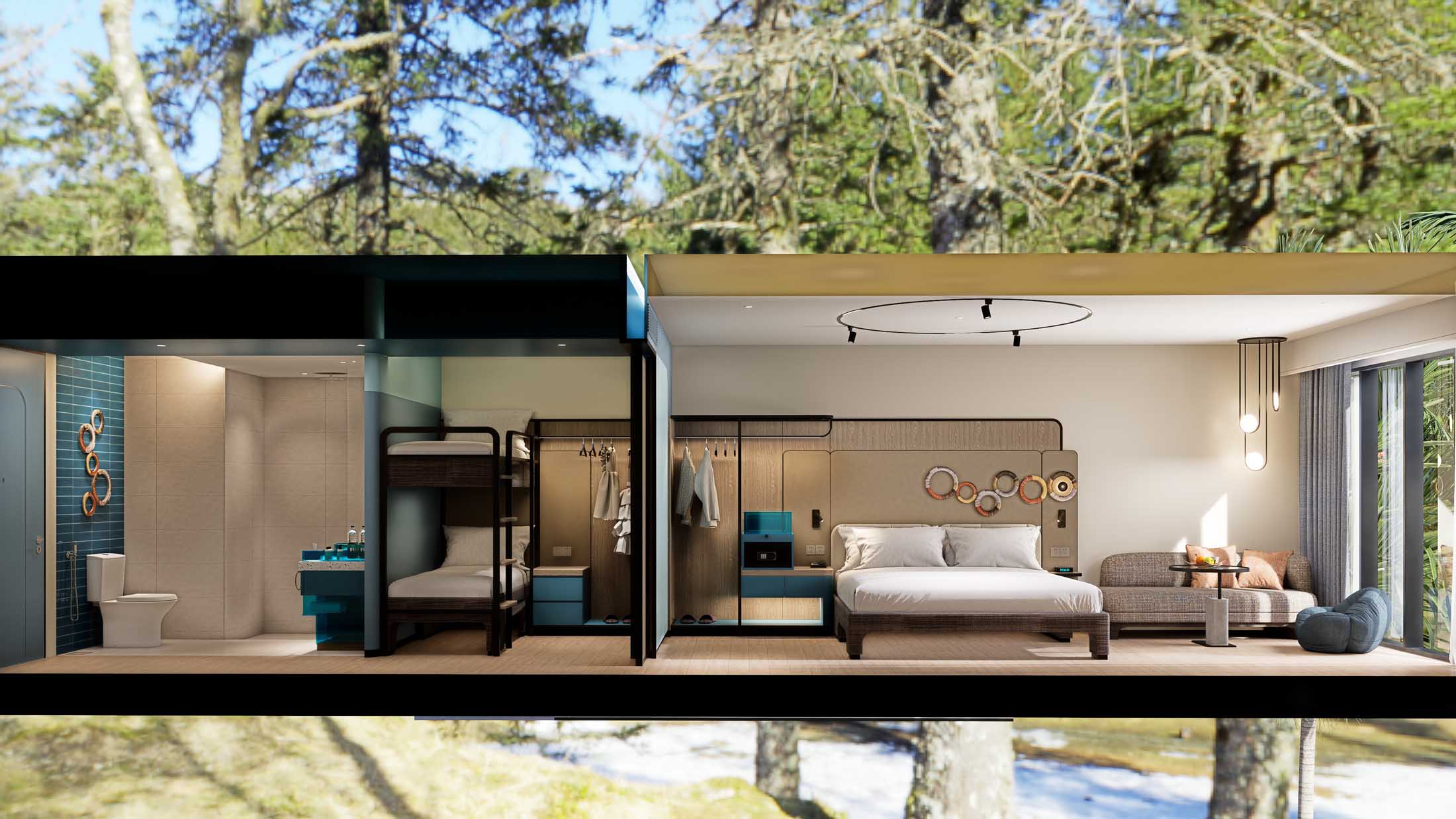 Designed with families in mind, the Family Room offers 39 square meters of comfortable, stylish space. It features a plush king-sized bed alongside a cosy bunk bed nook perfect for…