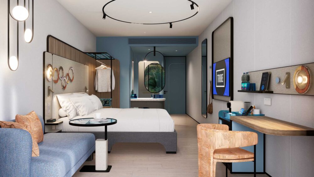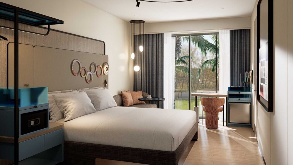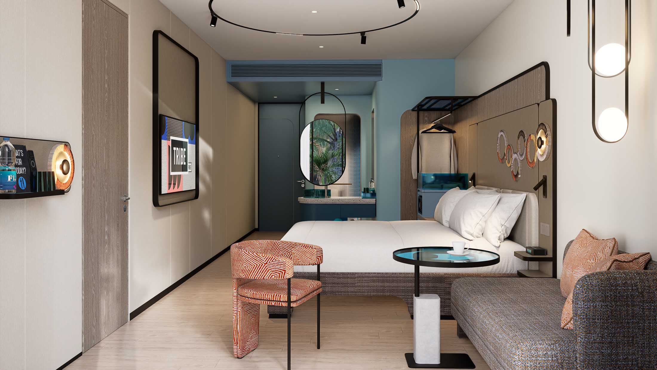 Our King Room offers 30 square meters of stylish, modern comfort perfect for solo travellers or couples. Featuring a plush king-sized bed, a large 55" TV, and a mini fridge, this room is your peaceful retreat after a day exploring Denarau. The contemporary design is inspired by Fiji’s vibrant spirit, blending bold colours and natural textures to create a welcoming island vibe. Whether you’re relaxing or planning your next adventure, the King Room delivers all the comforts you need for a restful stay at Na Tomba.